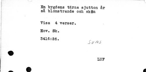 //// En bygdens tärna sjutton år //// så blomstrande och skS)n //// ? //// )! //// Visa 4 verser. //// Hov. Sk. //// M //// i!- //// ' 3416:26. //// < //// < //// j LUF ////