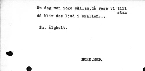 //// En dag men icke sAllan,d& resa vi till //// stan //// då blir det ljud i skällan... //// .' . ... //// Sm. Älghult. //// t //// HORD.MUS. ////