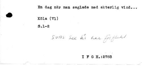 //// En dag när man seglade med akterlig vind... //// Köla (VI) //// ; //// S.l-2 //// 1 //// I F G H.:2783 ////