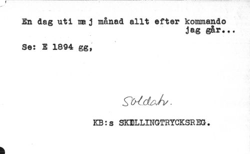 //// En dag uti ma j månad allt efter kommando //// jag går*.. //// \ //// Se: E 1894 gg, //// KB:s SKILLINGTRYCKSREG. ////