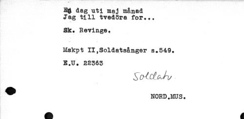 //// E& dag uti maj månad //// Jag till tvedBra for... //// i - //// Sk. Revinge. //// <**- * ^ //// Mskpt II,Soldatsånger s.549. //// E.U. 22363 //// ^ NORD.MUS. ////