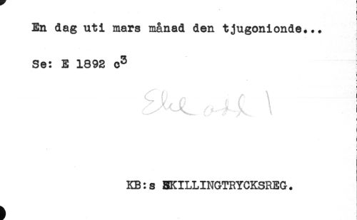 //// En dag uti mars månad den tjugonionde... //// Se: E 1892 o^ ! //// ; //// t //// 6 //// ( ' , f \ ! //// ! //// ) //// i //// t //// ! //// KB:s SKILLINGTRYCKSREG. ////