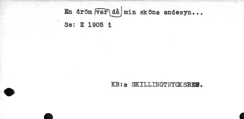 //// En dröm fvär\dåjmin sköna andesyn... //// Se: E 1905 i //// ^ KB:s SKILLINGTRYCKSREB. ////