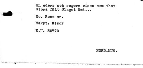 //// En eders och segerz wisse som thet //// store fält Slaget Emi..* //// Go. Rone sn. //// Mskpt. Tisor //// E.U. 36772 //// NORD.MUS. //// ----..-.,,----^ ^....... ^.......___ ////