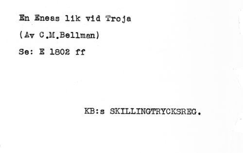 //// En Eneas lik vid Tröja //// . * - - //// (Av C.M. Be Urnan) //// Se: E 1802 ff //// KB:s SKILLINGTRYCKSREG. ////