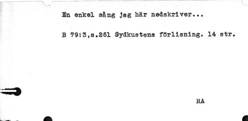 //// En enkel sång jag här nedskriver... //// - * < . " * //// B 79:3,s.261 Sydkustens fSrlisning. 14= str. //// RA ////