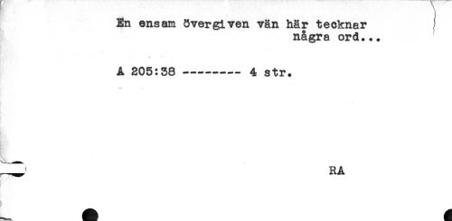 //// En ensam övergiven vän här tecknar ! //// några ord... //// * //// A 205:38 ----- 4 str. //// : //// ^^ RA //// t ////