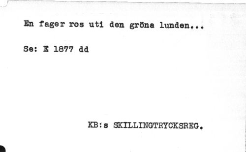 //// En fager ros uti den gröna lunden... //// ! //// Se: E 1877 dd //// KB:s SKILLINGTRYCKSREG. ////