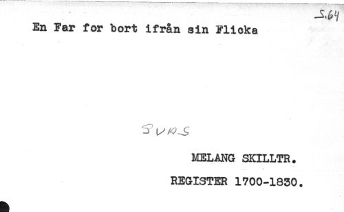 //// En Far for bort ifrån sin Flicka //// MELANG SKILLTR. //// REGISTER 1700-1830. ////