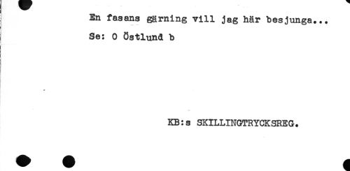 //// j En fasans gärning vill jag här besjunga... //// i //// i Se: O östlund b //// t //// t //// I //// i //// I //// * //// KB:s SKILLINGTRYCKSREG. ////