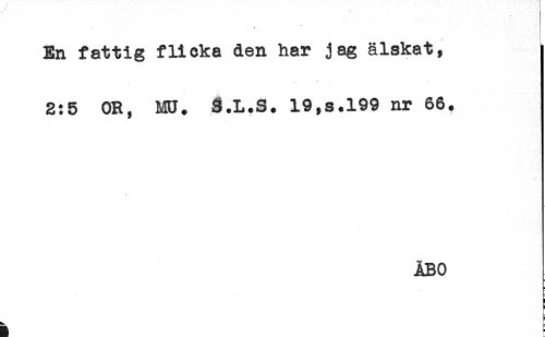 //// En fattig flicka den har jag älskat, //// 2:5 OR, MU. 3.L.S. 19,s.199 nr 66. //// ÅBO //// m { ////