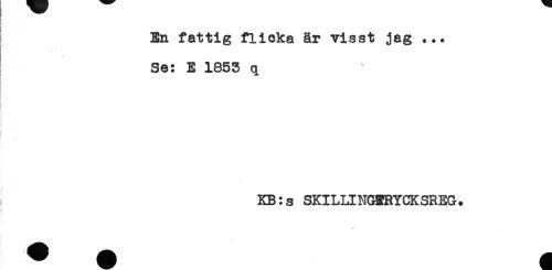 //// i En fattig flicka år visst jag ... //// Se: E 1853 q //// KB:s SKILLINGTRYCK SREG. ////
