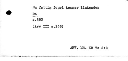 //// En fattig fogel koiaiaer linkandes //// s.283 //// ^ //// (Arv III s.168) //// ARW. MS. KB Vs 2:2 ////