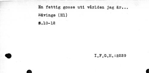 //// En fattig gosse nti våriden jag är... //// Rävinge (Hl) //// - //// 8.10-12 //// ^ I.F.G.H.:2229 ////