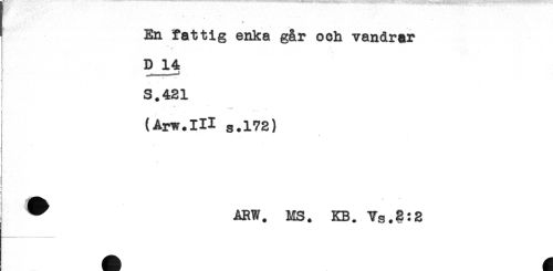 //// En fattig enka går ooh vandrar //// D 14 //// ** //// S.421 //// ! //// ; " ... //// (Arw.lH s.172) //// ^ //// 1 //// t . -.. //// ^ ARW. MS. KB. Ys.$:2 ////