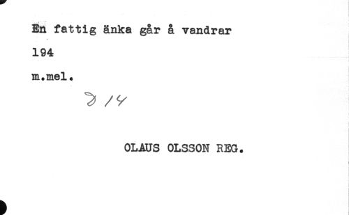 //// En fattig änka går å vandrar //// 194 //// m.mel* //// i //// OLAUS OLSSON REG. ////