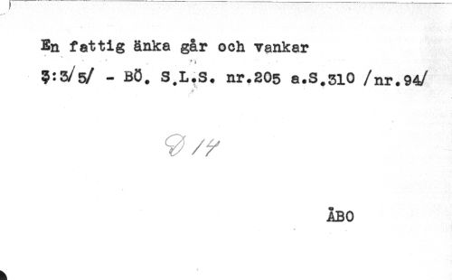 //// En fattig änka går och vankar //// * //// 9:3/5/ - B8. S.L.S. nr.205 a.S.510 /nr.94 //// /ÅBO ////