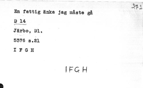 //// En fattig änka jag måste gå //// D 14 //// Järbo, Dl. //// 5376 s.21 //// I F G H //// fPGH ////