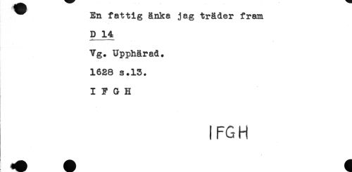 //// ^ En fattig änka jag träder fram //// D 14 //// Yg. Upphärad. //// 1628 s.13. //// I ? G H //// [FGH ////