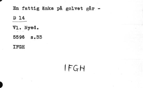 //// En fattig änka p& golvet går - //// D 14 //// VI. Nyed. //// * * t //// 5596 s.33 //// IFGH ////