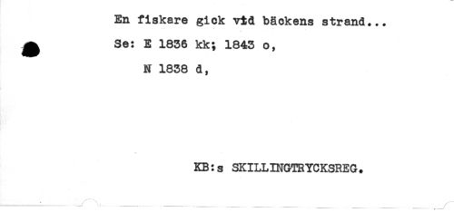 //// En fiskare gick vid bäckens strand... //// ! //// ^ Se: E 1836 kk; 1843 o, //// N 1838 d, //// KB:s SKILLINGTRYCKSREG. //// _ / '*-. . /' ////