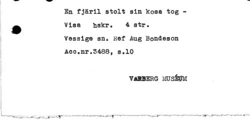 //// En fjäril stolt sin kosa tog - //// ^ Visa hskr. 4 str. //// Vessige sn. Ref Ang Bondeson //// Acc+nr.3488, s.10 //// ! //// ) //// VABBERG HUSÉ^Id //// ._____^____....____-_____ _____f- - it- ////