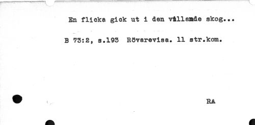 //// \ //// En flicka gick ut i den vållande skog... //// ^ . * - ' * //// B 73:2, s.193 Rövarevisa. 11 str.kom. ////