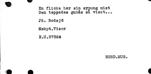 //// En flicka har sin sypung mist //// Den tappades gunås sa visst... //// Jä+ Bodsjö //// Mskpt.Visor //// E.U.37524 //// NORD.MUS. ////