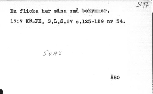 //// En flicka har siina små bekymmer, //// W * * ^ . //// 17:7 KB-PE. S.L.S.57 s.125-129 nr 54. //// : f . ' //// # //// ÅBO //// < ////