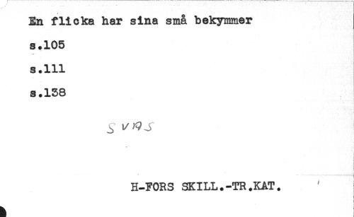 //// / . ... //// En flicka har sina små bekymmer //// s.105 //// s.lll //// s.138 //// t //// i //// j //// - i //// i //// H-FORS SKILL.-TR.KAT. ' //// i //// i //// h I ////