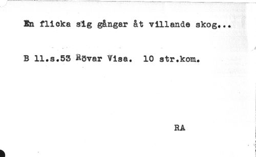 //// En flicka sig gångar åt villande skog... //// B ll.s.53 Rövar Visa. 10 str.kom. //// i; //// C //// RA ////
