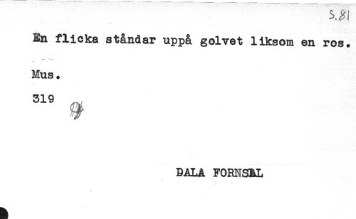 //// En flicka ståndar uppå golvet liksom en ros. //// - //// Mus. //// 319 //// %% //// DALA FORNSKL //// * ////