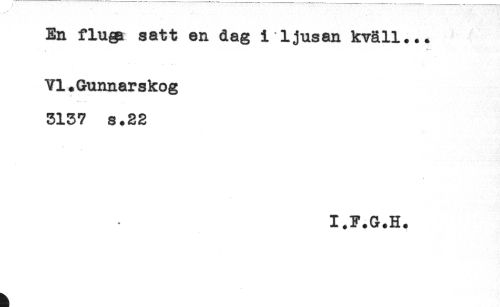 //// En flugi satt en dag i ljusan kväll... //// Yl.Gunnarskog //// 3137 s.22 //// I.F.G.H. ////