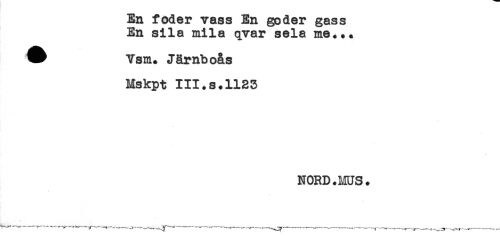 //// En foder vass En göder gass //// En sila mila qvar sela me... //// ^ Ysm. Järnboås //// Mskpt III.s*1123 //// NORD.MUS. //// t-----......-....- -----.---^---- ////
