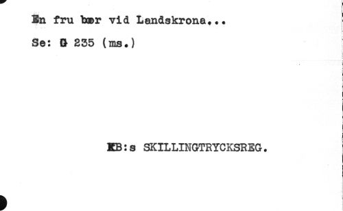 //// ^ - t //// En fru hcr vid Landskrona... //// -- t //// I- //// Se: & 235 (ms.) //// f //// c //// i //// i //// < //// . //// f //// i //// § //// ! //// i //// KB:s SKILLINGTRYCKSREG. ////
