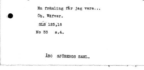 //// i ...... //// En främling får jag vara... //// ; .- * .. v //// 8b. Wäfvar. //// SLS 125,16 //// ] //// No 53 s.4. //// * //// i //// ! //// I //// ; //// a //// ÅBO SJÖBERGS SAIvfL. ////