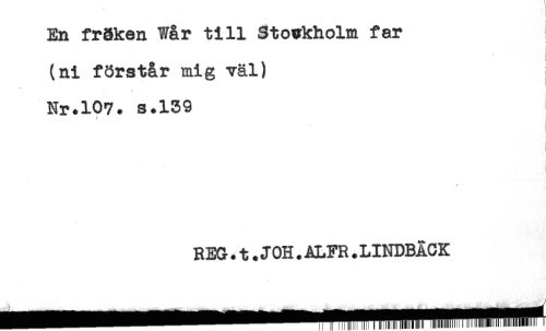 //// En fräken Wår till Stovkholm far //// ! //// i //// (ni förstår mig väl) s //// * //// ; //// Nr.107. s.139 //// * ! //// < //// REG.t.JOH.ALFR.LINDBÄCK ////