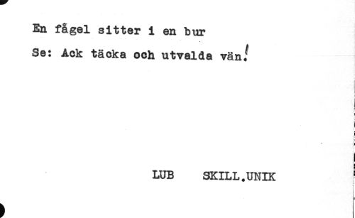 //// En fågel sitter i en bur //// Se: Ack täcka och utvalda vänj //// < //// ! //// - //// * //// ! //// ! //// j //// LUB SKILL.UNIK = ////