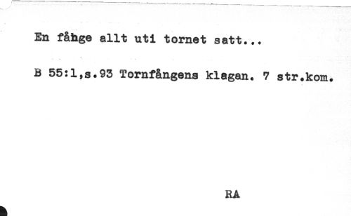 //// / - ...---- -- //// En fåhge allt uti tornet satt... //// <. * - //// B 55:1,s.93 Tornfångens klagan. 7 str.kom. //// RA ////