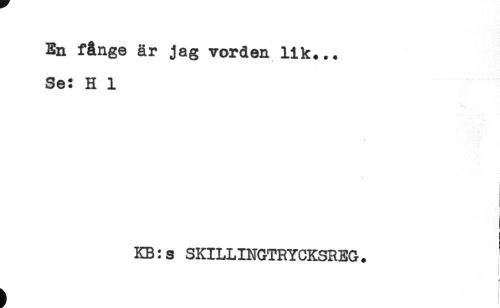 //// En fånge är jag vorden lik... //// Se: H 1 //// i //// ) //// KB:s SKILLINGTRYCKSREG. ' ////