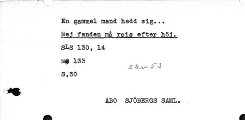 //// En gammal mand hadd sig... //// Nej fanden må reis efter höj. //// SLs 130, 14 //// N# 133 //// S.30 //// ABO SJÖBERGS SAHL. ////