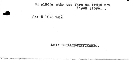 //// En glädje står oss före en fröjd som //// ingen störe... //// Se: E 1898 it //// KB:s SKILLINGTRYCKSREG. ////