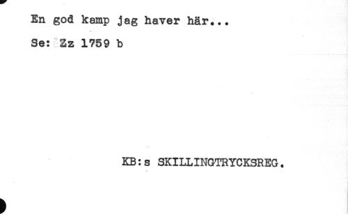 //// En god kamp jag haver här... //// Se: Zz 1759 b //// KB:s SKILLINGTRYCKSREG. ////