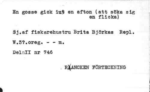 //// .** * : //// - - ' * - - : -- -'.t*'. //// En gosse giok iu# en afton (att s8ka sig //// en flicka) //// Sj.af fiskarehustru Brita Björkas Repl. //// . //// W.3?.oreg. - - //// f //// : //// { //// Delnll nr 746 //// i //// i //// k //// . R^ANCKEN FÖRTECKNING ////