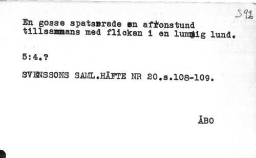 //// En gosse spatserade en aftonstund //// tillsammans med flickan i en lum#ig lund. //// ** * - //// 5:4.? //// SVENSSONS SAML.HÄFTE NR 20.s.108-109. //// ÅBO //// m ////