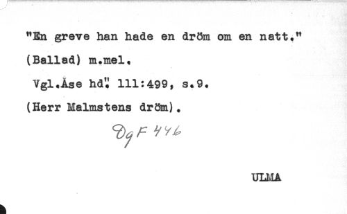 //// "En greve han hade en dröm om en natt." //// (Ballad) m.mel, //// Vgl.Ase hd!J 111:499, s.9. //// (Herr Malmstens dröm). ////