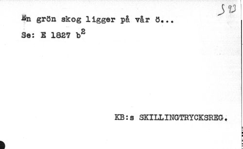 //// En grön skog ligger på vår ö... //// Se: E 1827 b^ //// KB:s SKILLINGTRYCKSREG. ////