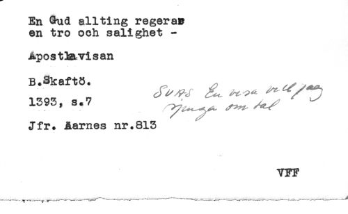 //// En Gud allting regeras //// en tro och salighet - //// Apos tia/vis an //// B.Skaftö. //// S.7 ^ ^ //// Jfr. Åarnes nr.813 ////
