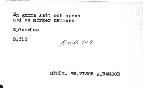 //// En gumma satt och spann //// uti en mörker kammare //// Spinn-vi sa //// STRÖM. SV.VISOR o.RAMSOR ////