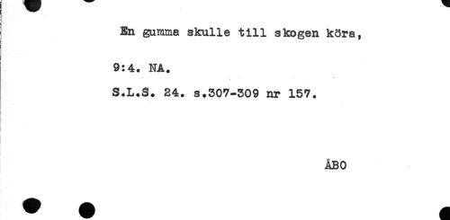 //// j //// ! //// En gumma skulle till skogen köra, //// 9:4. NA. //// S.L.S. 24. s.307-309 nr 157. //// ÅBO ////